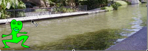 the Transform tool and click on the Frog and make the Frog smaller.
